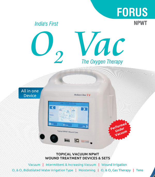 Forus is a pioneering Indian medical technology company specializing in Negative Pressure Wound Therapy (NPWT) systems. As the creator of India’s first O₂ Vac – a breakthrough in combining vacuum-assisted wound healing with oxygen and ozone therapy – Forus delivers all-in-one, easy-to-use devices designed for both hospital and home care.